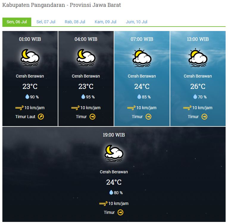 Laporan Harian & Prakiraan Cuaca Kabupaten Pangandaran – Senin, 06 Juli 2020
