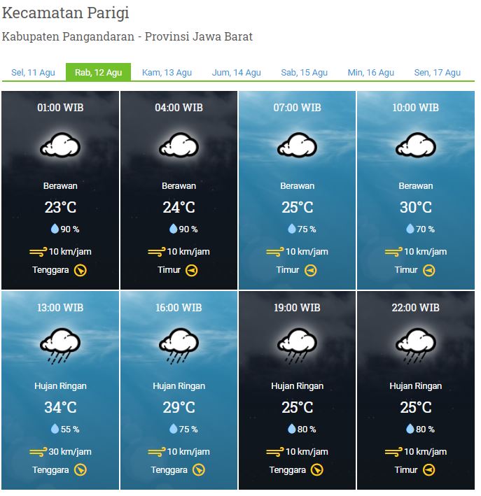 LAPORAN HARIAN & PRAKIRAAN CUACA KABUPATEN PANGANDARAN – RABU 12 AGUSTUS 2020