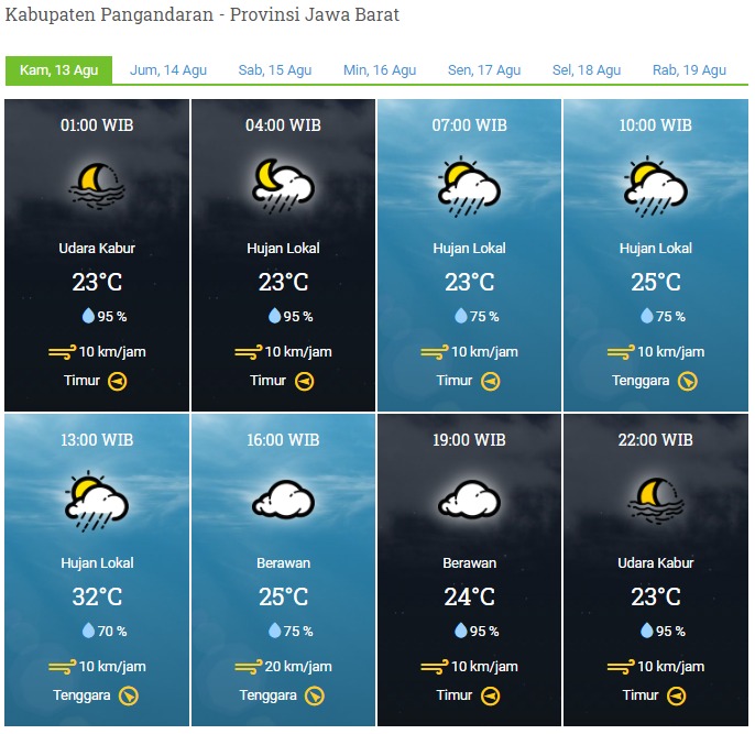 LAPORAN HARIAN & PRAKIRAAN CUACA KABUPATEN PANGANDARAN – KAMIS 13 AGUSTUS 2020
