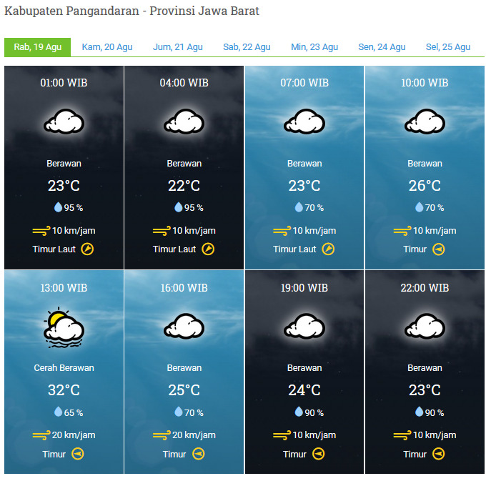 LAPORAN HARIAN & PRAKIRAAN CUACA KABUPATEN PANGANDARAN – RABU, 19 AGUSTUS 2020