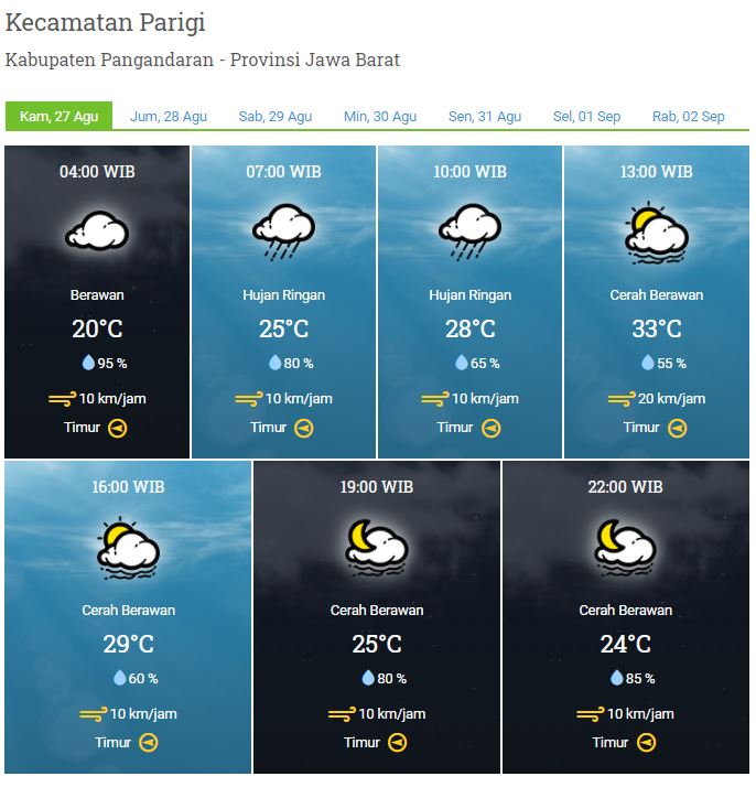 LAPORAN HARIAN & PRAKIRAAN CUACA KABUPATEN PANGANDARAN – KAMIS, 27 AGUSTUS 2020