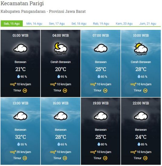 LAPORAN HARIAN & PRAKIRAAN CUACA KABUPATEN PANGANDARAN – SABTU, 15 AGUSTUS 2020