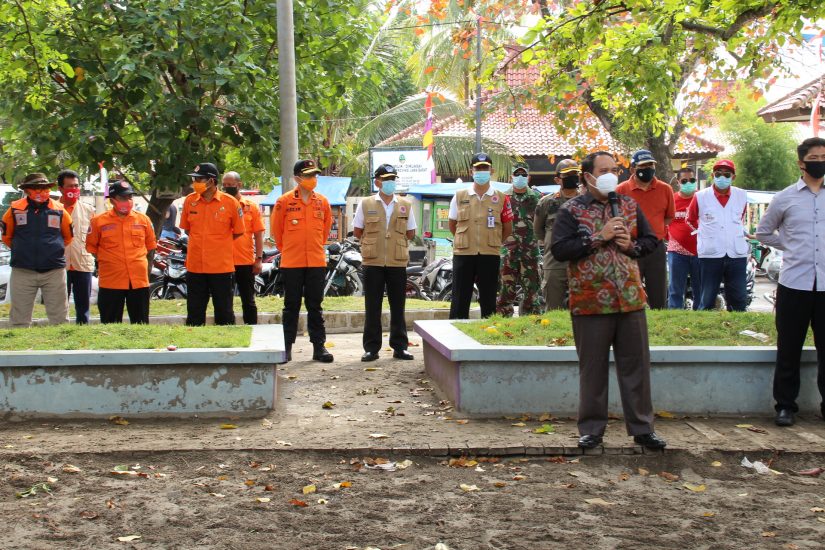 Kegiatan bertempat di depan Pondok Seni Pantai Barat Pangandaran. Untuk acara kegiatan diawali dengan sambutan dari Kepala Pelaksana BPBD Provinsi Jawa Barat Dr. H. Dani Ramdan, M.T. mengatakan ” Mudah2n ekonomi semakin tumbuh dimasa pandemi ini. Kita sebagai petugas menjadi tauladan dimata masyarakat, agar melihatkan kepada masyarakat bahwa kita memakai masker. Dan kita sebagai petugas harus selalu menjaga kesehatan saat bekerja dalam menangani pandemi Corona ini” ucapnya.