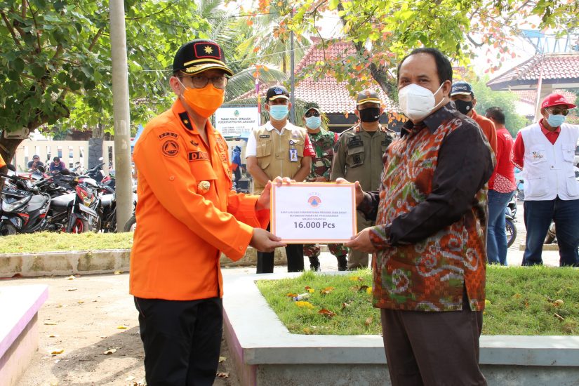 Kegiatan ini diakhir dengan pemberian masker dari BPBD Provinsi Jabar kepada Pemerintah Kabupaten Pangandaran serta melaksanakan sosialisasi dan pemberian masker kepada wisatawan dan pelaku usaha yang tidak memakai masker.