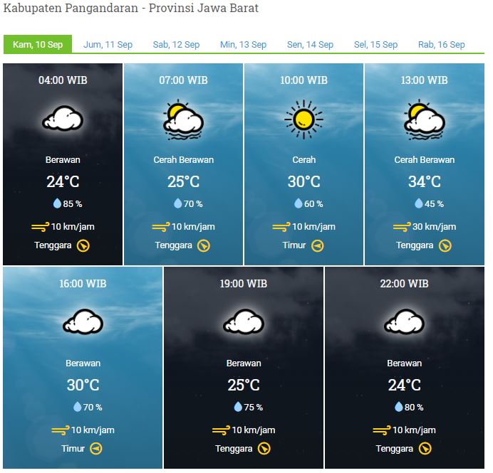 Laporan Harian & Prakiraan Cuaca kabupaten Pangandaran – Kamis, 10 September 2020