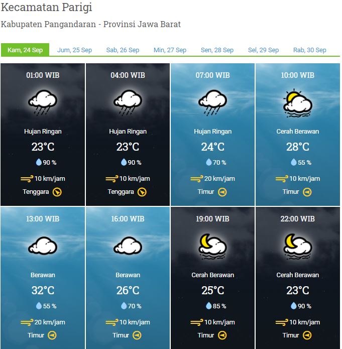 Laporan Harian & Prakiraan Cuaca kabupaten Pangandaran – Kamis, 24 September 2020
