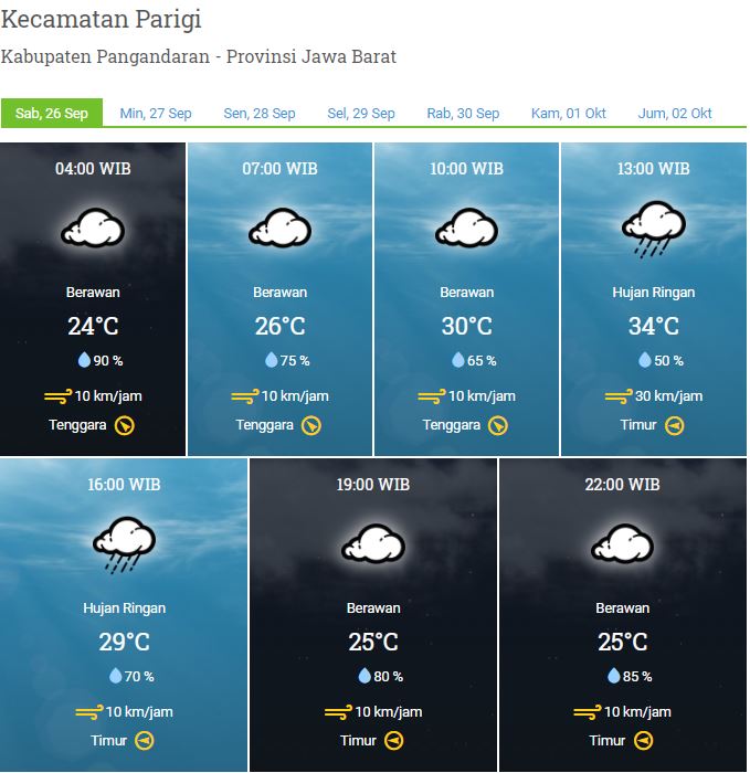 Laporan Harian & Prakiraan Cuaca kabupaten Pangandaran – Sabtu, 26 September 2020