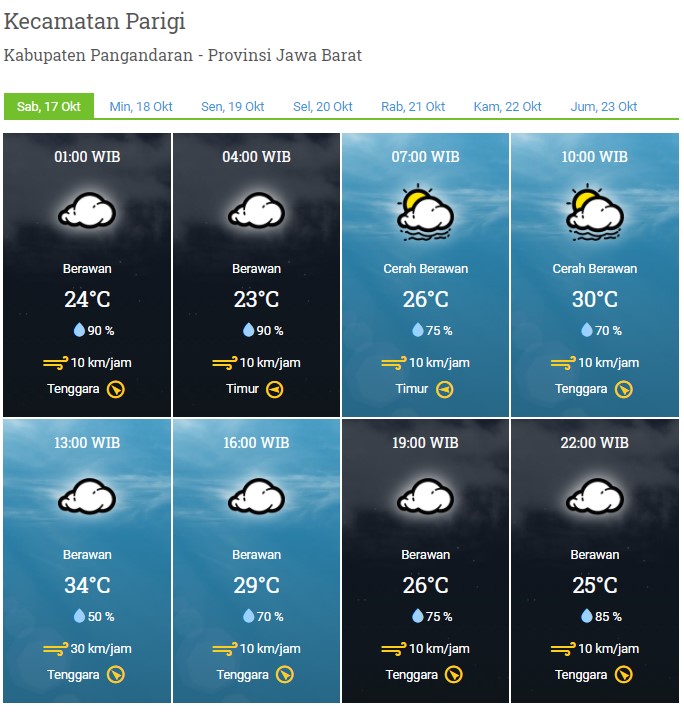 Laporan Harian & Prakiraan Cuaca Kabupaten Pangandaran – Sabtu, 17 Oktober 2020