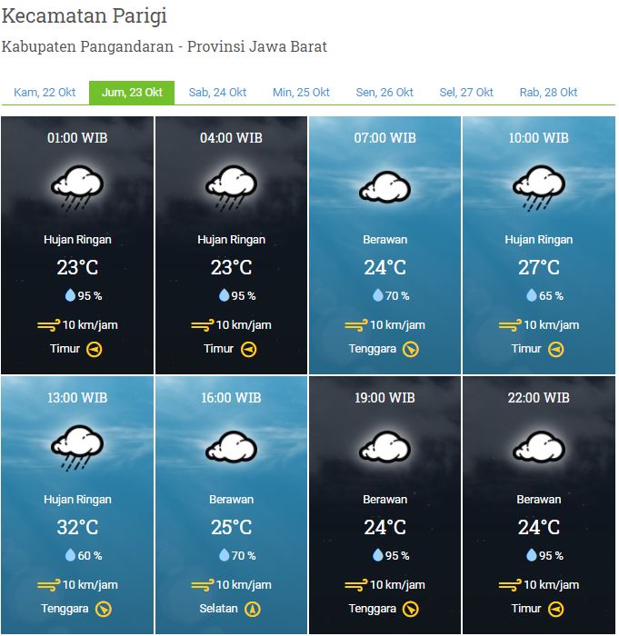 Laporan Harian & Prakiraan Cuaca Kabupaten Pangandaran – Jumat, 23 Oktober 2020