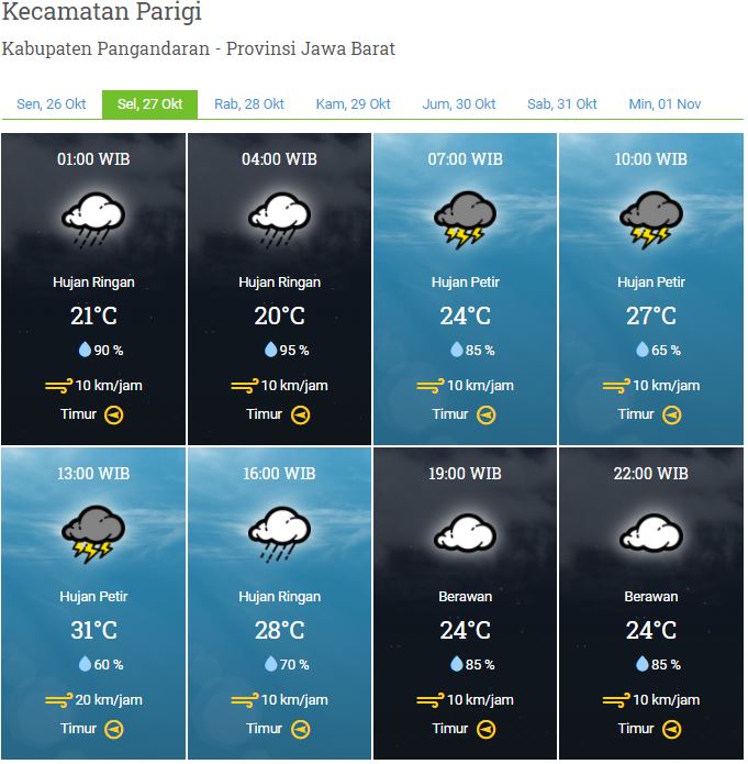 Laporan Harian & Prakiraan Cuaca Kabupaten Pangandaran – Selasa, 27 Oktober 2020