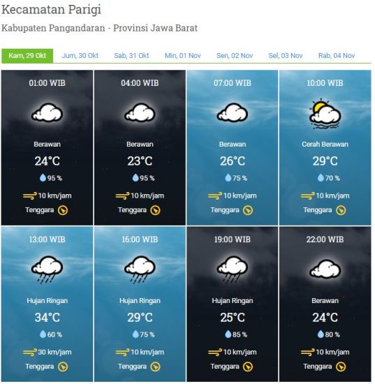 Peringatan Dini : Waspada potensi hujan sedang hingga lebat yang dapat disertai angin kencang, kilat/petir pada Siang hingga malam hari di wilayah Kab Tasikmalaya, Kab Kuningan, Kota Banjar, Kab Cirebon, Kab. Garut, Kab Ciamis, Kab Pangandaran, Kab Subang, Kab Bandung, Kab Bandung Barat, Kota Bandung, Kota Cimahi, Kab Garut, Kab Sukabumi, Kota Sukabumi, Kab Purwakarta, Kab Karawang, Kota Bogor dan Kab Bogor.