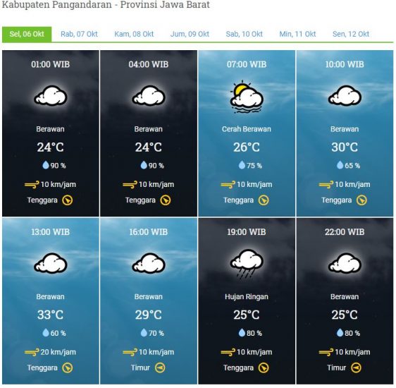 Laporan Harian & Prakiraan Cuaca Kabupaten Pangandaran – Selasa, 6 Oktober 2020