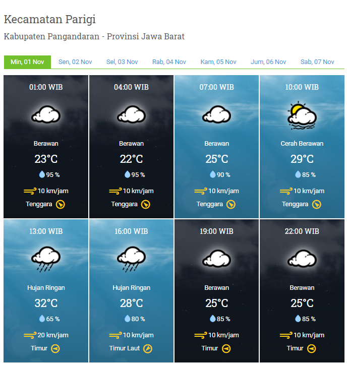 Laporan Harian & Prakiraan Cuaca Kabupaten Pangandaran – Minggu, 01 November 2020