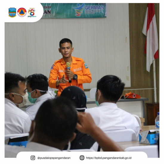 Kegiatan dibuka oleh Sekretaris Dinas Kesehatan Kabupaten Pangandaran Bapak Yadi Sukmayadi, S.Kep. Dilanjutkan materi dan praktek penyelamatan saat terjadi gempa bumi beserta simulasinya.