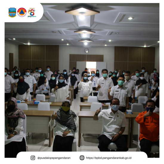 Pangandaran – 11 November 2020. Badan Penanggulangan Bencana Daerah (BPBD) Kabupaten Pangandaran menghadiri sekaligus menjadi narasumber pada kegiatan Pertemuan Penanggulangan Krisis Kesehatan, yang diadakan oleh Dinas Kesehatan Kabupaten Pangandaran di Aula Hotel Sandaan Pangandaran, dengan jumlah peserta sebanyak 64 orang.