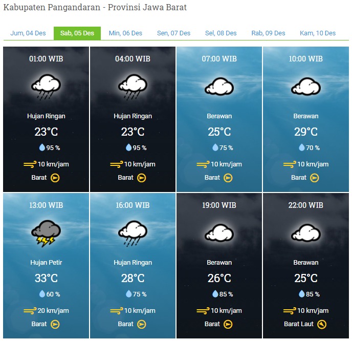 Laporan Harian & Prakiraan Cuaca Kabupaten Pangandaran – Sabtu, 05 Desember 2020