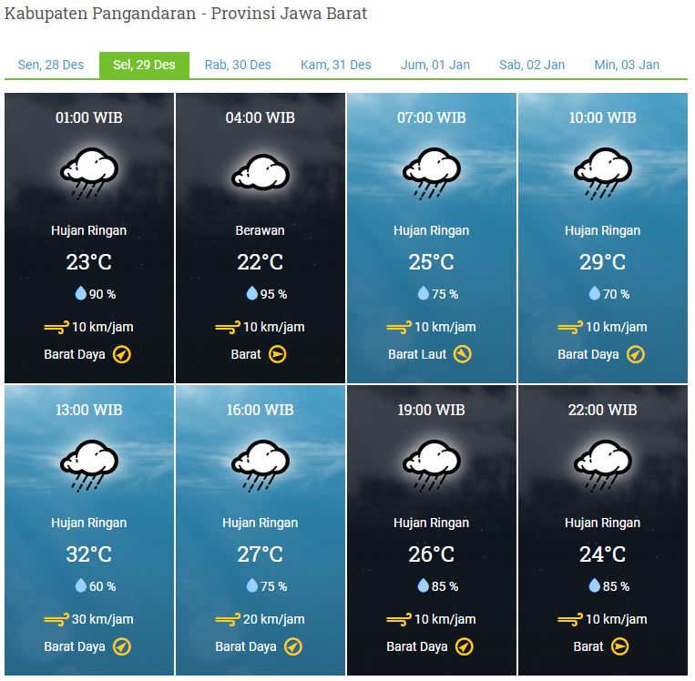 Laporan Harian & Prakiraan Cuaca Kabupaten Pangandaran – Selasa, 29 Desember 2020