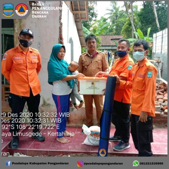 Hari ini Selasa, 29 Desember 2020 – Badan Penanggulangan Bencana Daerah (BPBD) Kabupaten Pangandaran hari ini memberikan bantuan logistik serta melakukan Assesment kepada korban terdampak bencana, dengan data sebagai berikut :