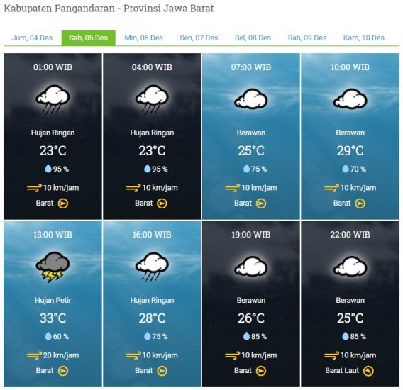 Kecepatan Angin : 10 km/jam – 20 km/jam