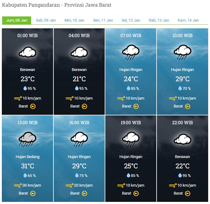 Laporan Harian & Prakiraan Cuaca Kabupaten Pangandaran – Jumat, 08 Januari 2021