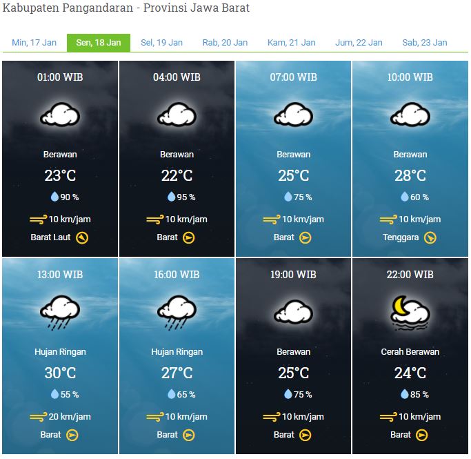 Laporan Harian & Prakiraan Cuaca Kabupaten Pangandaran – Senin, 18 Januari 2021