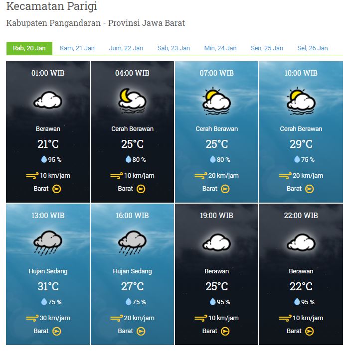 Laporan Harian & Prakiraan Cuaca Kabupaten Pangandaran – Rabu, 20 Januari 2021