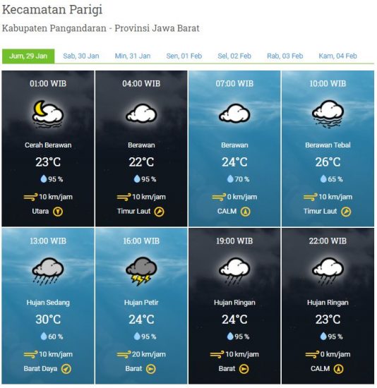 Laporan Harian & Prakiraan Cuaca Kabupaten Pangandaran – Jumat, 29 Januari 2021