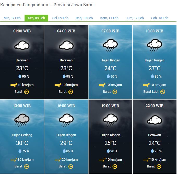 Laporan Harian & Prakiraan Cuaca Kabupaten Pangandaran – Senin, 08 Februari 2021