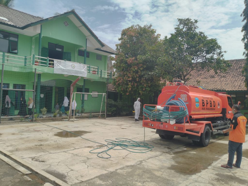 Cegah Klaster Baru, BPBD Kabupaten Pangandaran Semprot Disinfektan Di sejumlah Wilayah