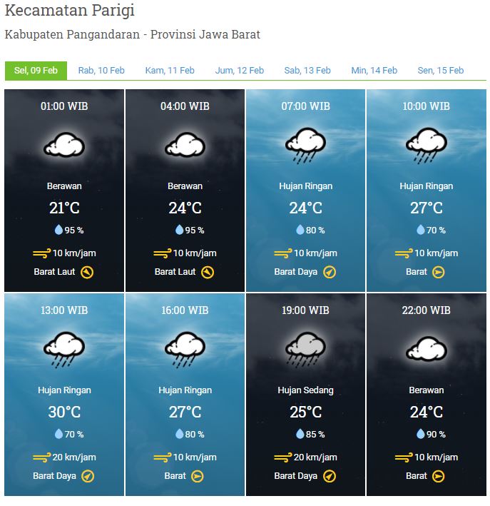Laporan Harian & Prakiraan Cuaca Kabupaten Pangandaran – Selasa, 09 Februari 2021