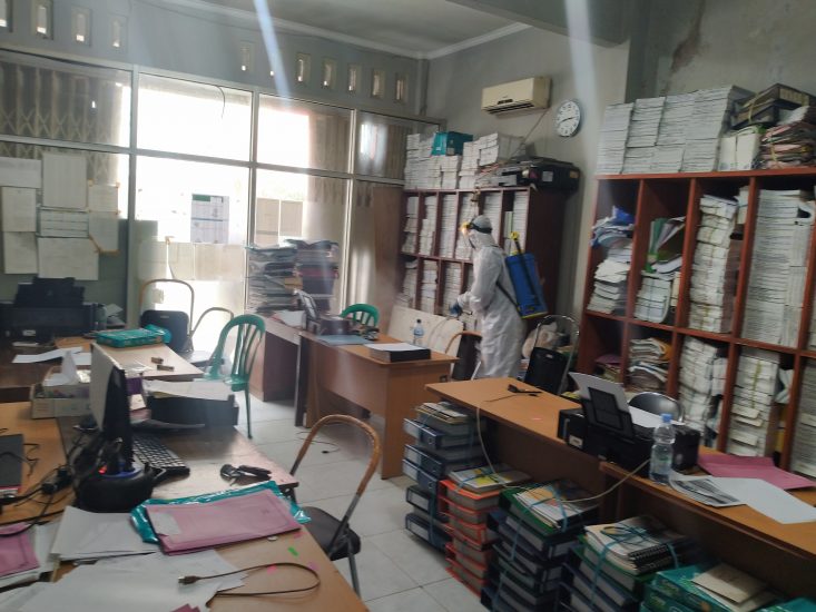 Penyemprotan DIsinfektan di ruangan yang berada di Kantor DInas PUPR