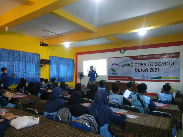 Rabu, 24 Maret 2021– BMKG Stasiun Geofisika Bandung berkolaborasi dengan BPBD Kabupaten Pangandaran melaksanakan kegiatan BMKG Goes To School yang dilaksanakan di beberapa sekolah diantaranya