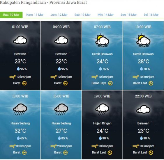 Laporan Harian & Prakiraan Cuaca Kabupaten Pangandaran – Rabu, 10 Maret 2021
