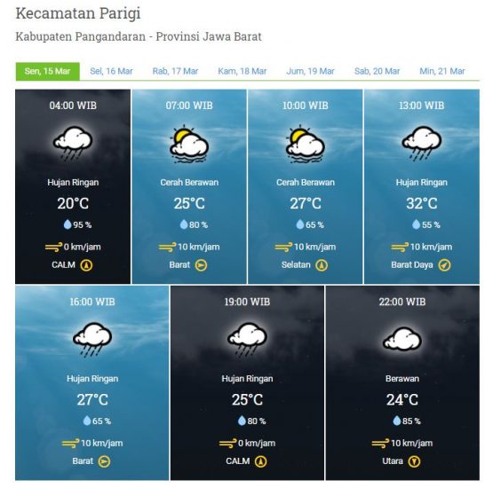 Kecepatan Angin : 0 – 10 km/jam