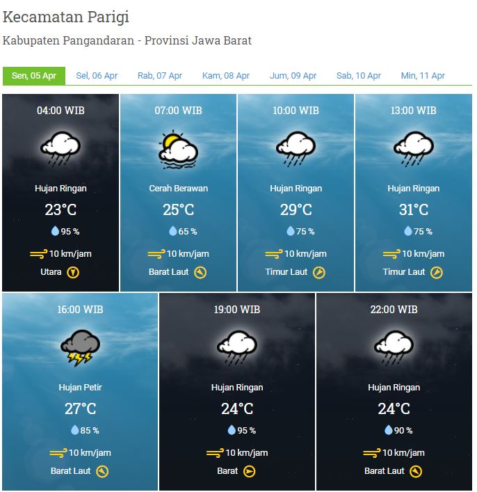 Laporan Harian & Prakiraan Cuaca Kabupaten Pangandaran – Senin, 05 April 2021