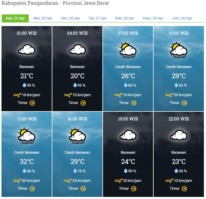 Laporan Harian & Prakiraan Cuaca Kabupaten Pangandaran – Sabtu, 24 April 2021