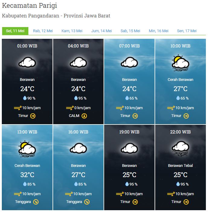 Laporan Harian & Prakiraan Cuaca Kabupaten Pangandaran – Selasa, 11 Mei 2021