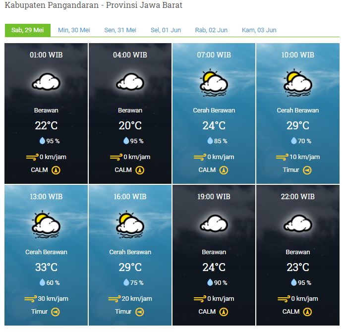 Laporan Harian & Prakiraan Cuaca Kabupaten Pangandaran – Sabtu, 29 Mei 2021