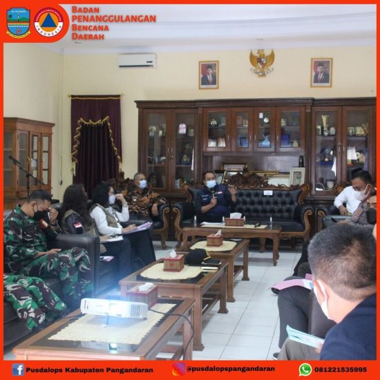 Kamis, 06 Mei 2021 – Badan Penanggulangan Bencana Daerah (BPBD) Kabupaten Pangandaran melaksanakan pendampingan kegiatan Kajian Operasional Penguatan/ Pembentukan Posko di 128 Kota/ Kabupaten di wilayah PPKM mikro di Jawa-Bali.