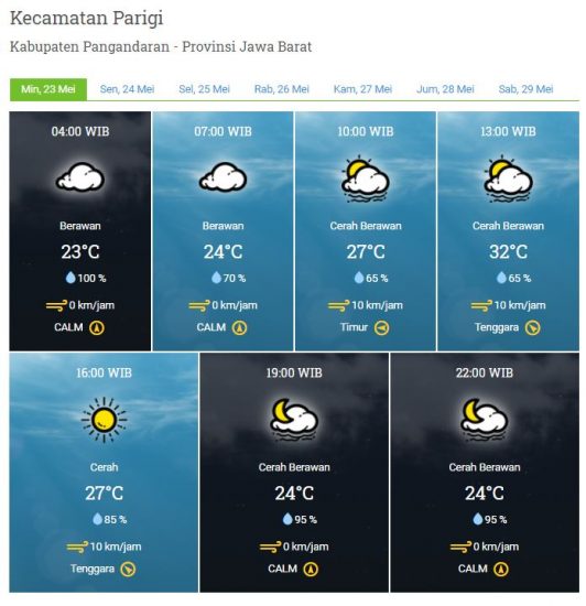 Kecepatan Angin : 0 – 10 km/jam