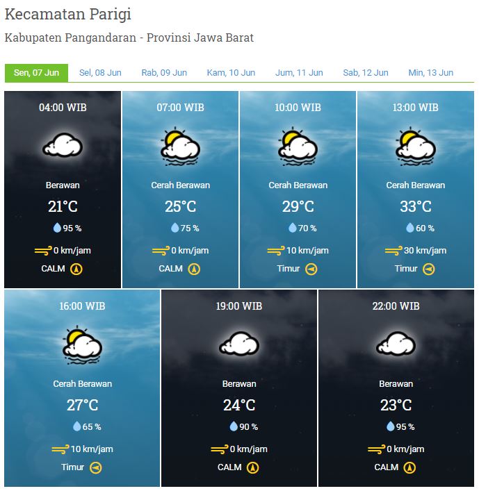 Laporan Harian & Prakiraan Cuaca Kabupaten Pangaandaran – Senin, 07 Juni 2021