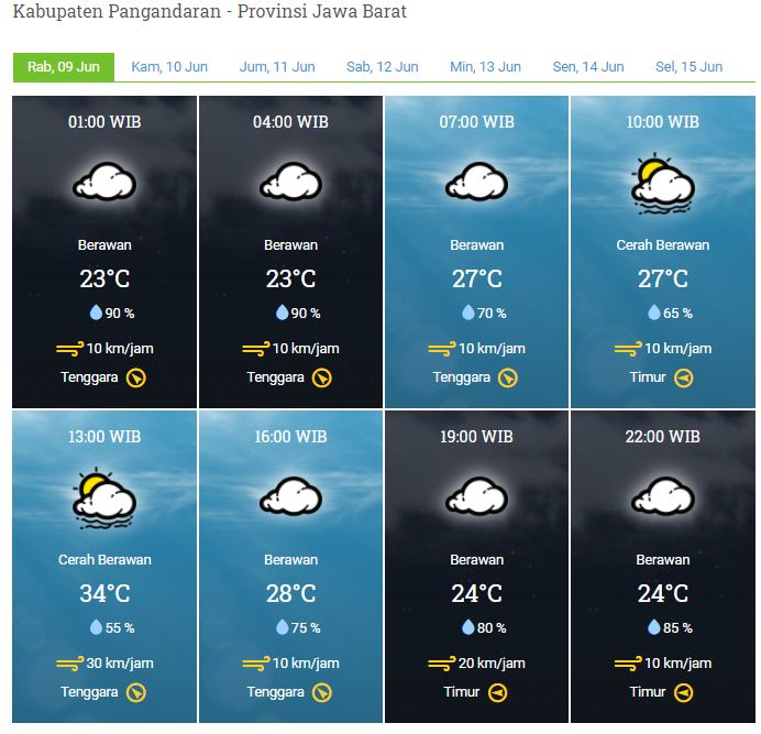 Laporan harian & Prakiraan Cuaca Kabupaten Pangandaran – Rabu, 09 Juni 2021