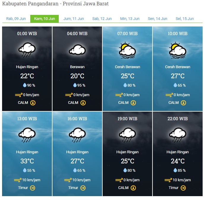 Laporan harian & Prakiraan Cuaca Kabupaten Pangandaran – Kamis, 10 Juni 2021
