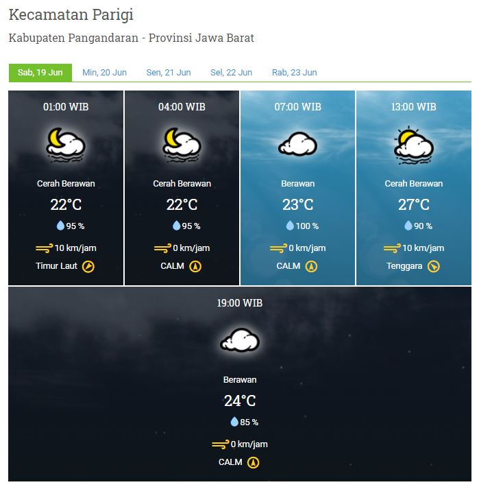 Laporan Harian & Prakiraan Cuaca Kabupaten Pangandaran – Sabtu, 19 Juni 2021