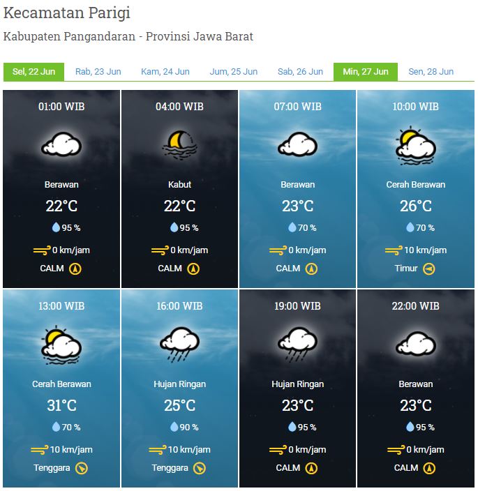 Laporan Harian & Prakiraan Cuaca Kabupaten Pangandaran – Selasa, 22 Juni 2021
