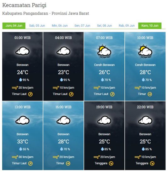 Kecepatan Angin : 10 – 30 km/jam