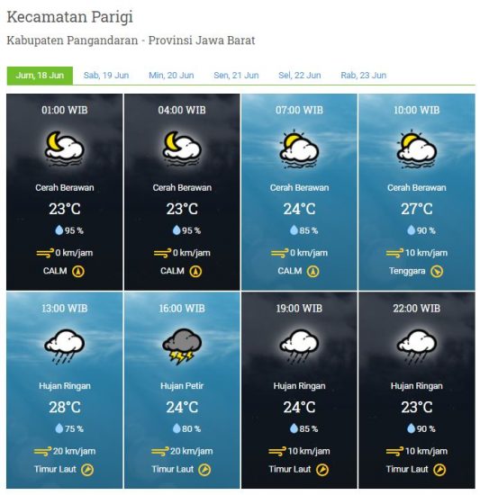 Laporan Harian & Prakiraan Cuaca Kabupaten Pangandaran – Jum’at, 18 Juni 2021