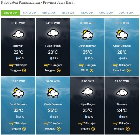 Peringatan dini : Waspada potensi hujan yang dapat disertai kilat/petir dan angin kencang pada sore hingga malam hari di wilayah Kab Pangandaran.