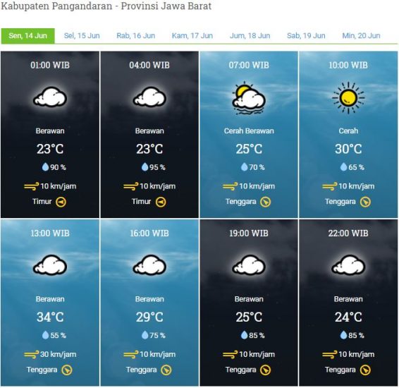 Laporan Harian & Prakiraan Cuaca Kabupaten Pangandaran – Senin, 14 Juni 2021