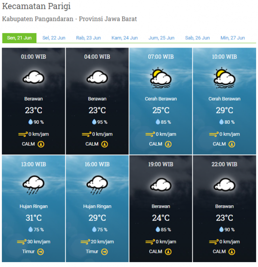Kecepatan Angin : 20 km/jam – 30 km/jam